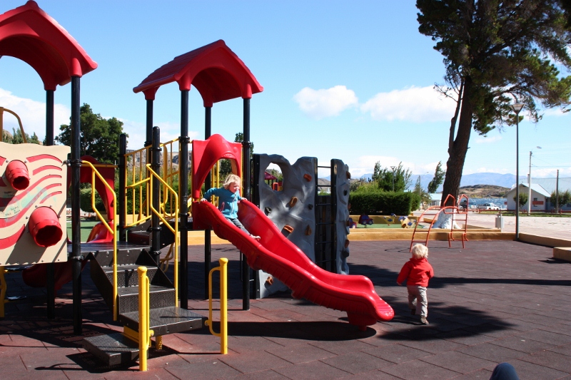 Ook opvallend is dat ieder dorp, hoe klein of verlaten ook een prachtige speeltuin heeft. Juul heeft zo iedere dag wel haar glijbaan.