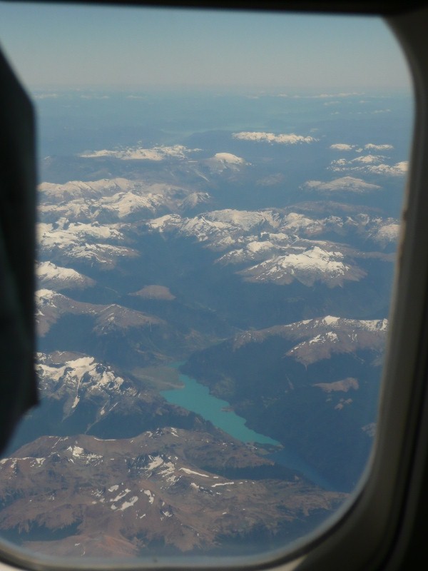 Vlucht naar Punta Arenas is overdag. Prachtig uitzicht door het raampje. Daar rijden we straks met de camper…!