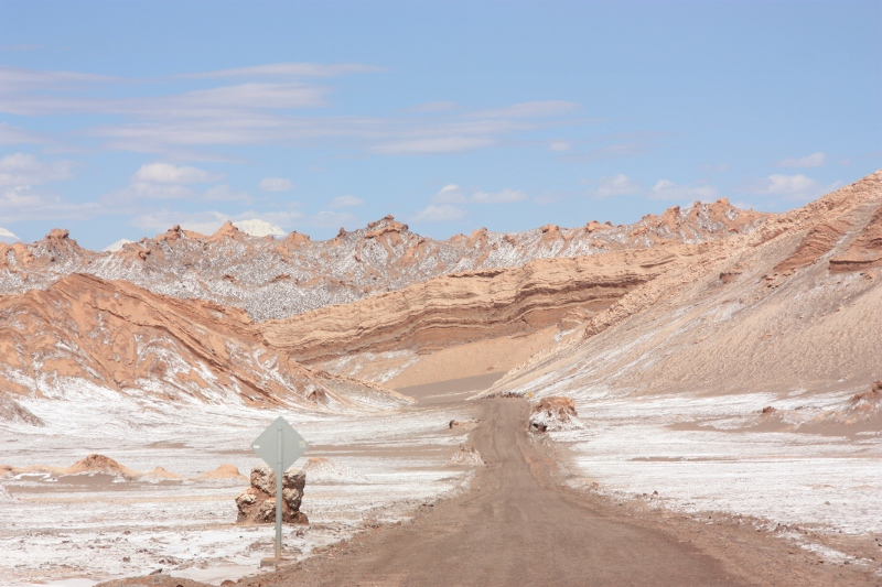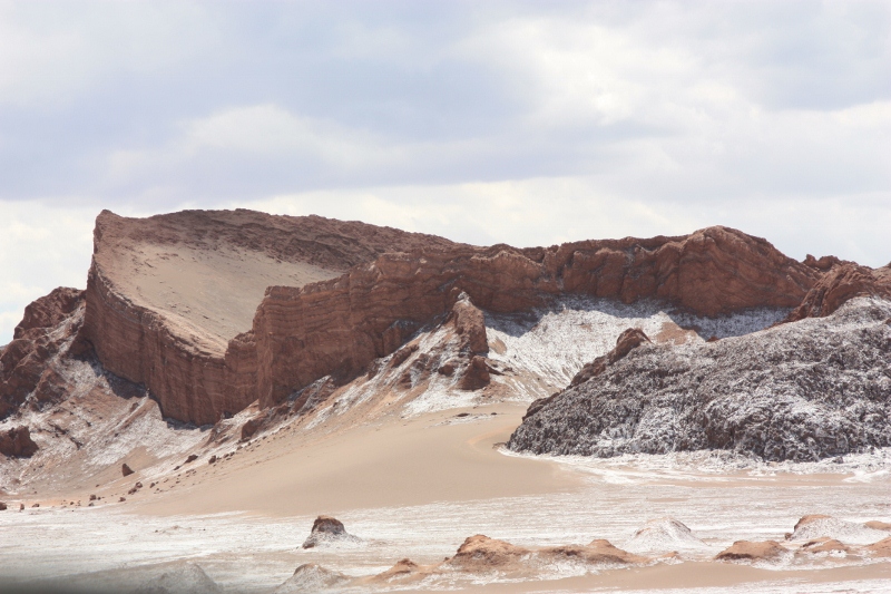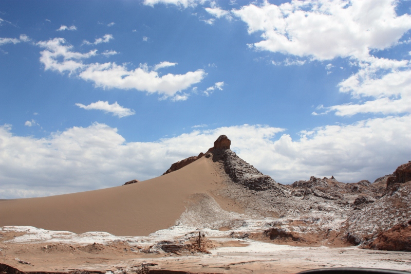 De Valle de la Luna hoor je eigenlijk bij zonsondergang/maanlicht te zien. Het zout in de rotsen spiegelt dan het maanlicht.