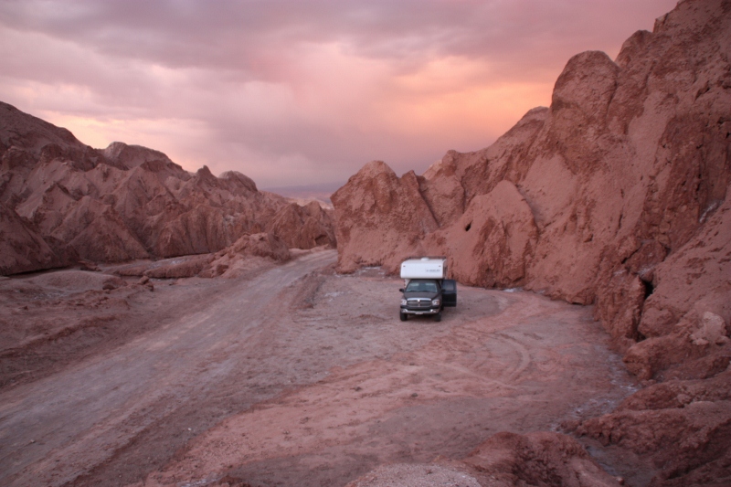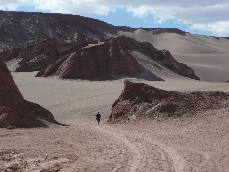 In de Valle de la Luna mag je niet overnachten. Wel in de Valle de la Muerta. Een nacht met doodse stilte en een schitterende sterrenhemel… Deze ´death valley´ is groots met zandduinen waar de durfals vanaf surfen. Het is er bloedheet en zo droog dat er niets leeft. Dat zou wel lekker zijn, een keertje zonder vliegen en muggen.